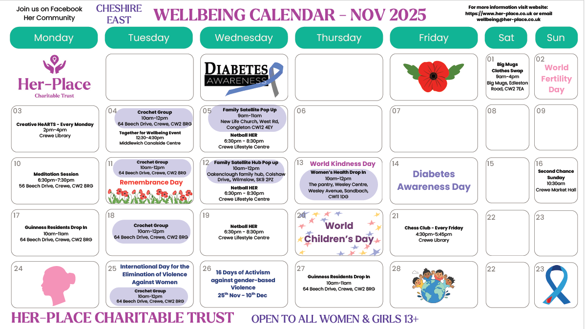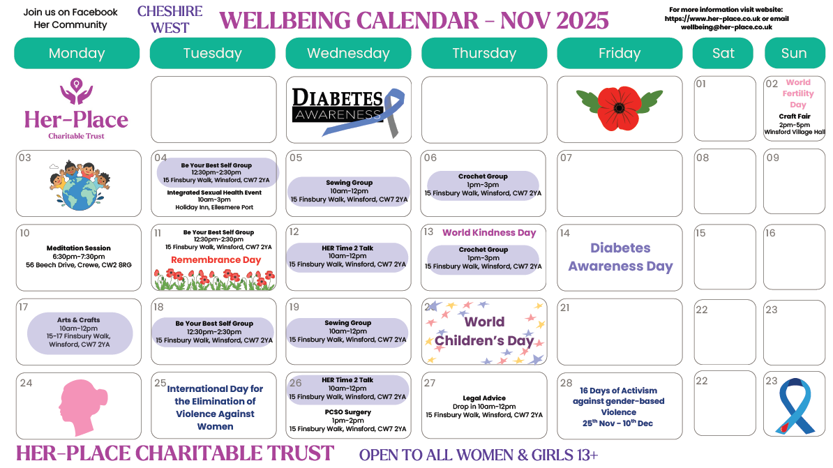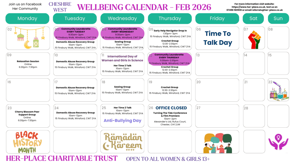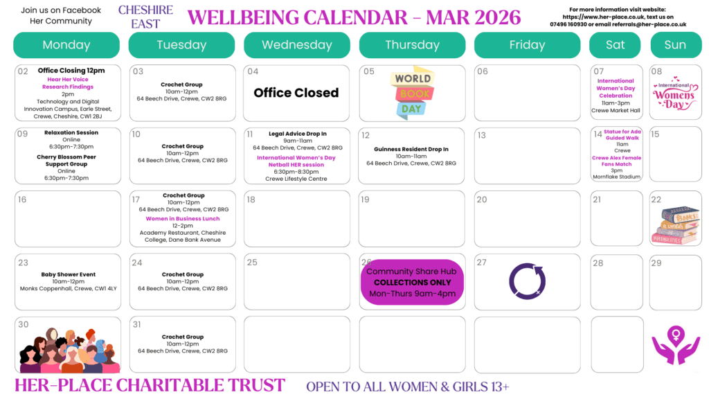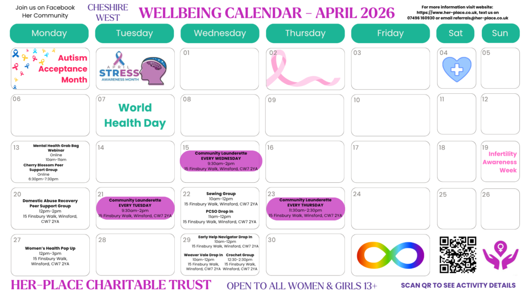 As of April 2025, Motherwell Cheshire will be changing its name to Her-Place Charitable Trust. This change reflects our evolving mission and our commitment to supporting not just mothers but all women and girls in our community.